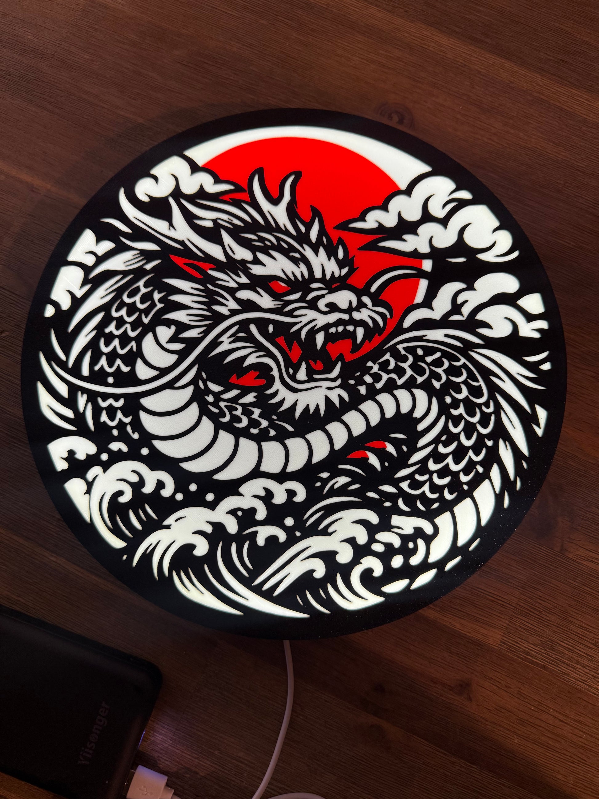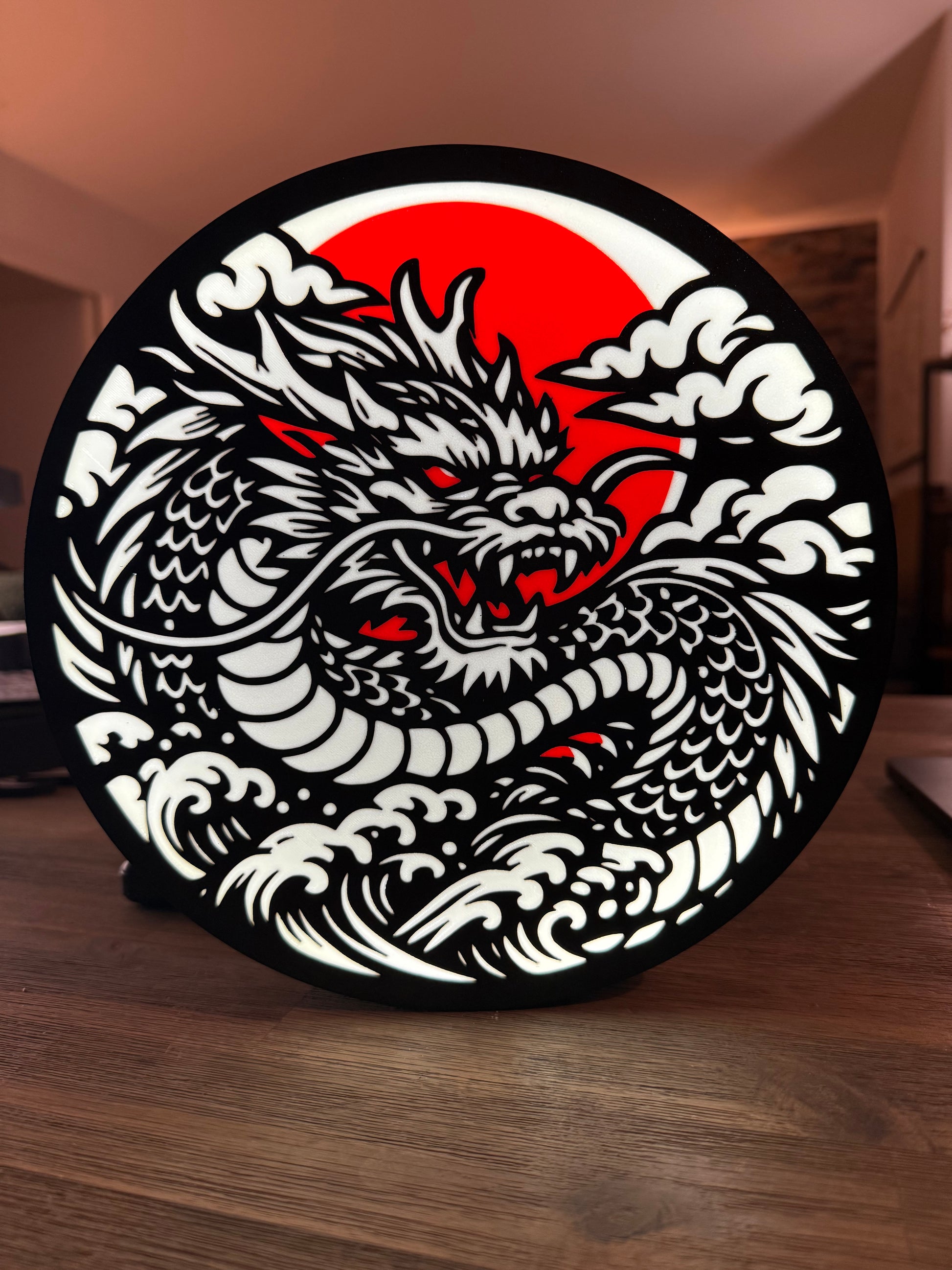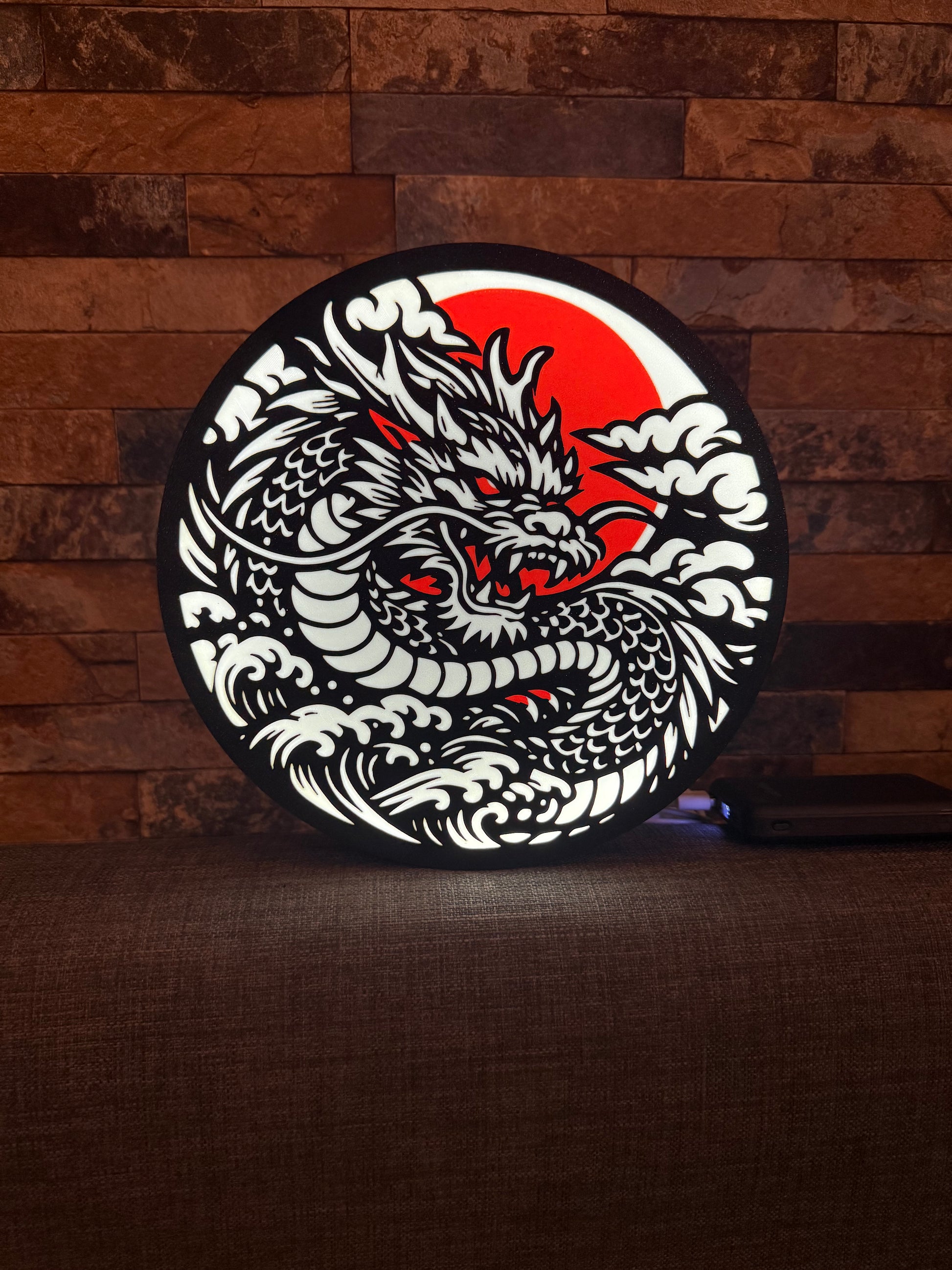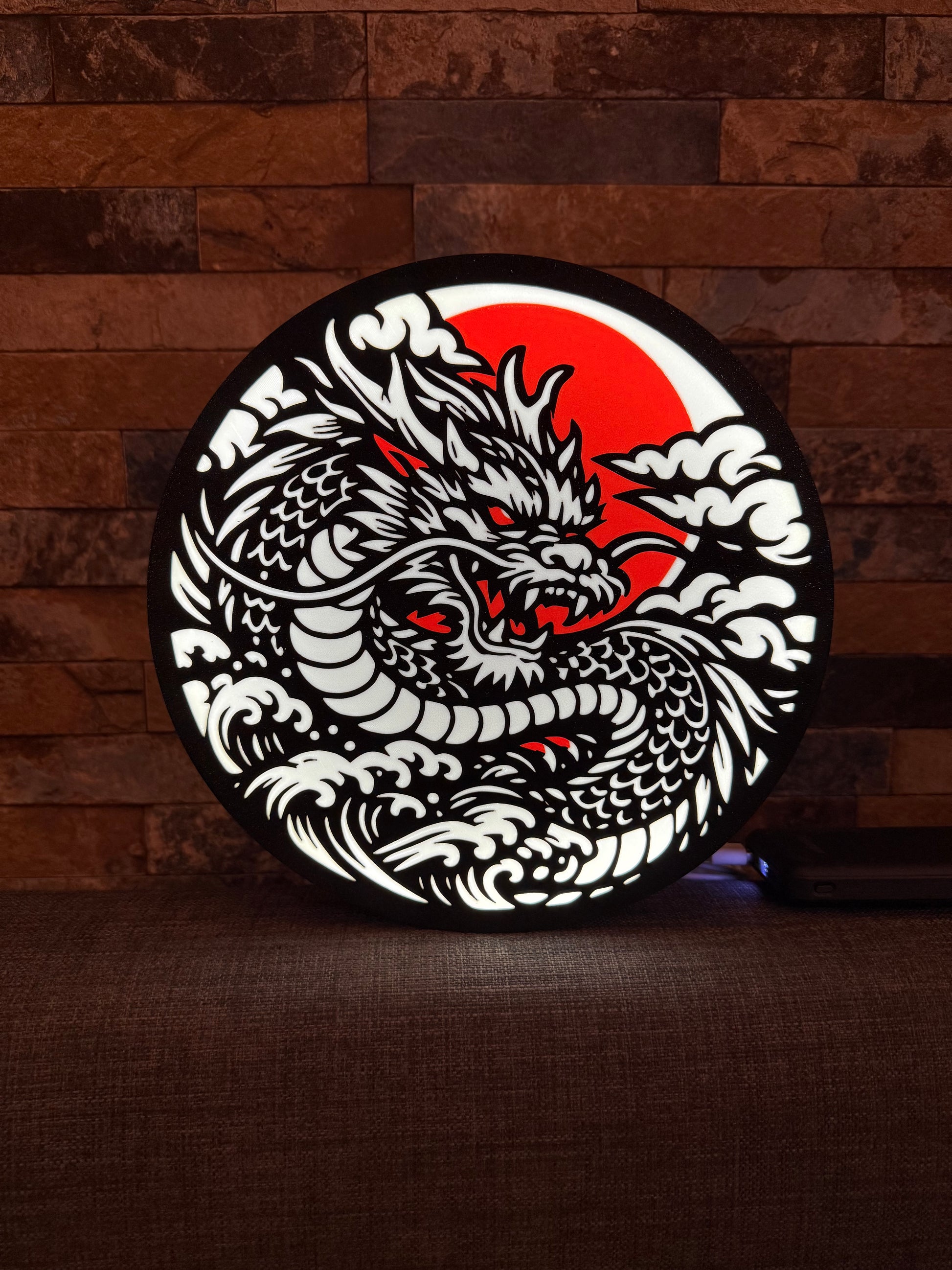 Lightbox Dragon Japonais LED – Décoration Murale Tattoo – Lampe Dragon Irezumi – Art Japonais – Cadeau Déco Moderne