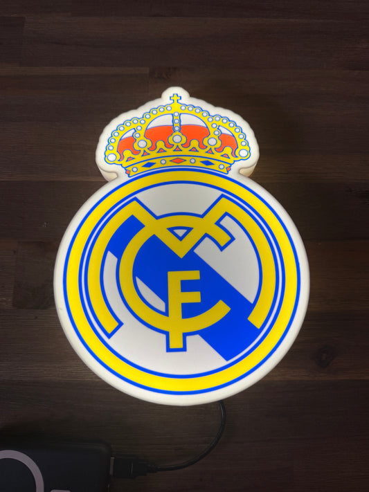 Enseigne Lumineuse Foot, Real Madrid,Football Équipe Décoration LED Support Cadeau Fan Foot