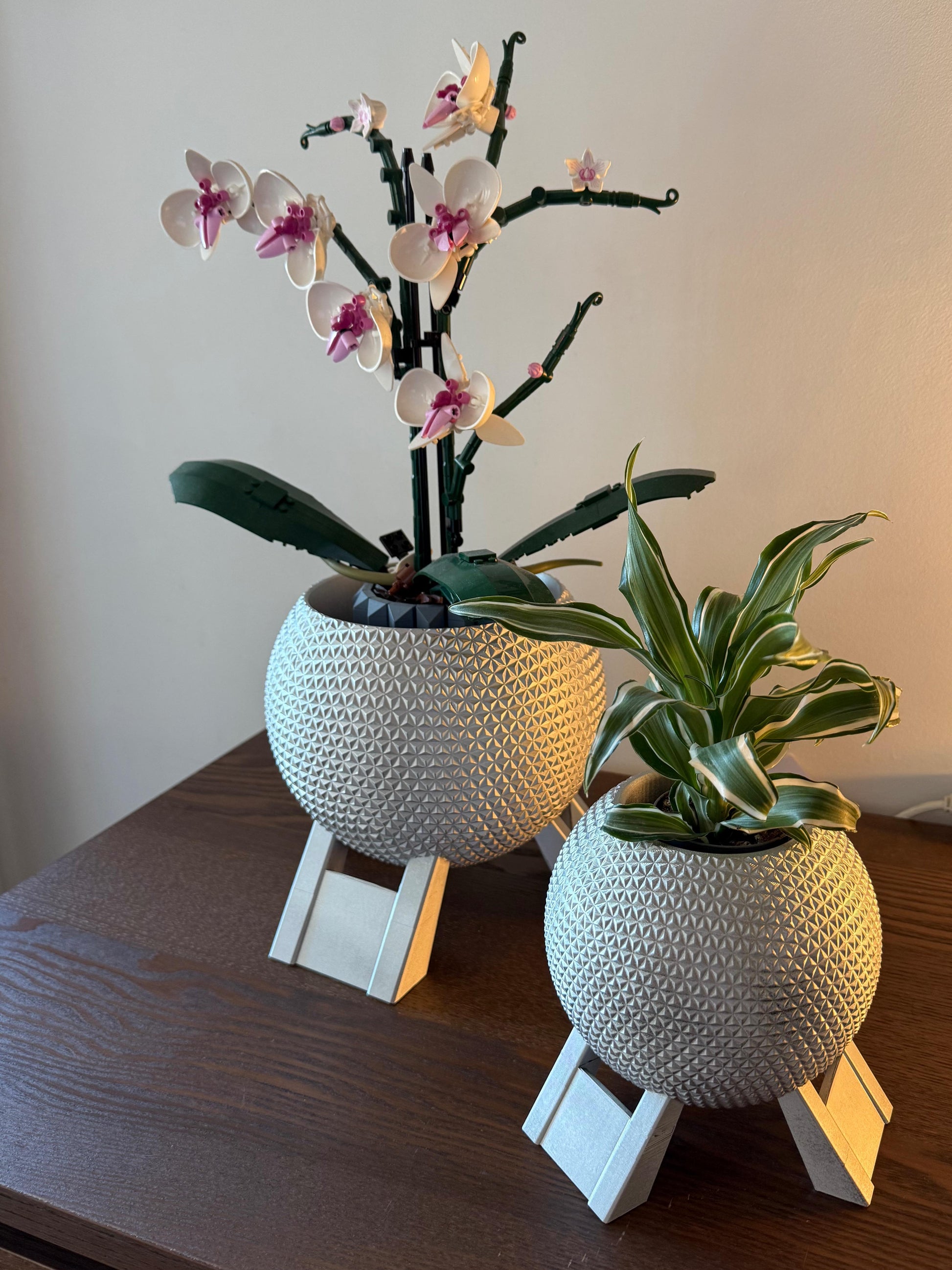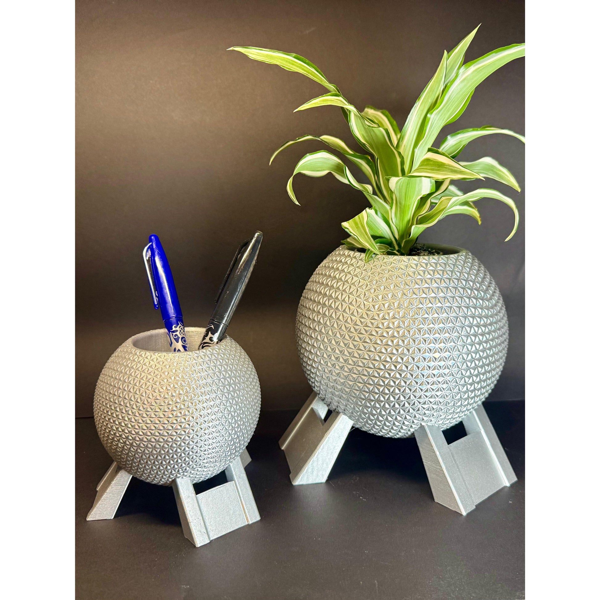 Ajoutez une touche futuriste et élégante à votre bureau ou à votre intérieur avec ce pot à crayons / cache-pot inspiré de Spaceship Earth, l’emblématique attraction d’EPCOT à Disney World. Conçu pour capturer les détails géométriques uniques de cette sphère légendaire, ce modèle imprimé en PLA offre une finition moderne et stylée.