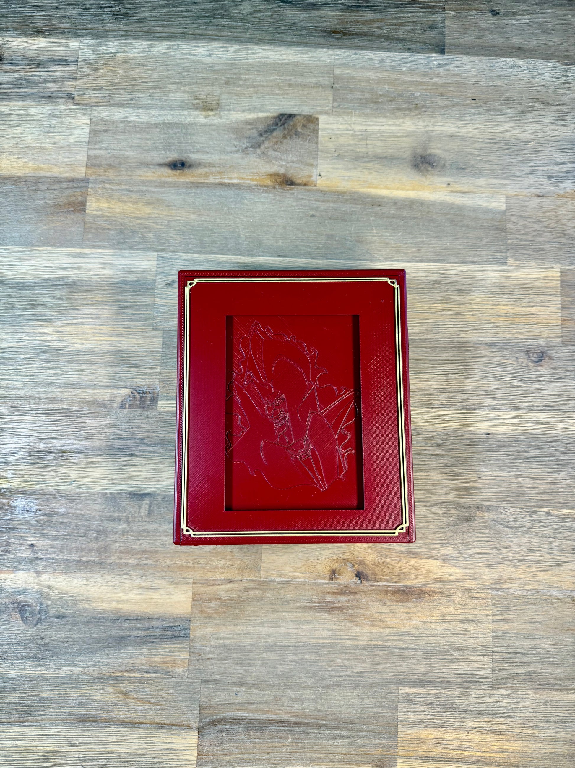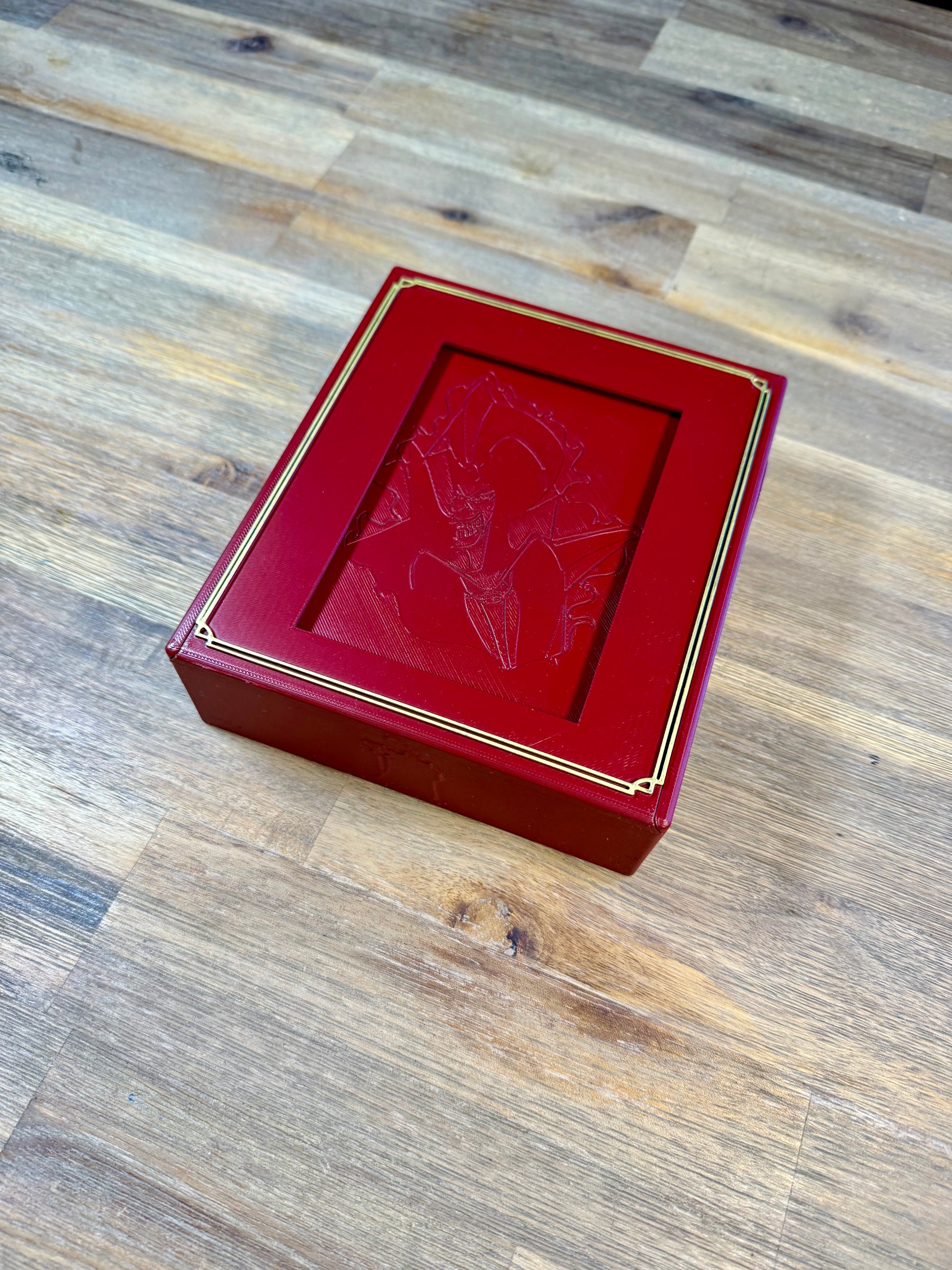 Plongez dans l’univers ensorcelant d’Agrabah avec notre Deckbox Lorcana spéciale « Vol au Palais » ! Inspirée par l’intrigant et redoutable Jafar, cette boîte de rangement est une création de fan unique, conçue en impression 3D et pensée pour accueillir l’intégralité de la quête ainsi que les trois grandes cartes de l’extension.
