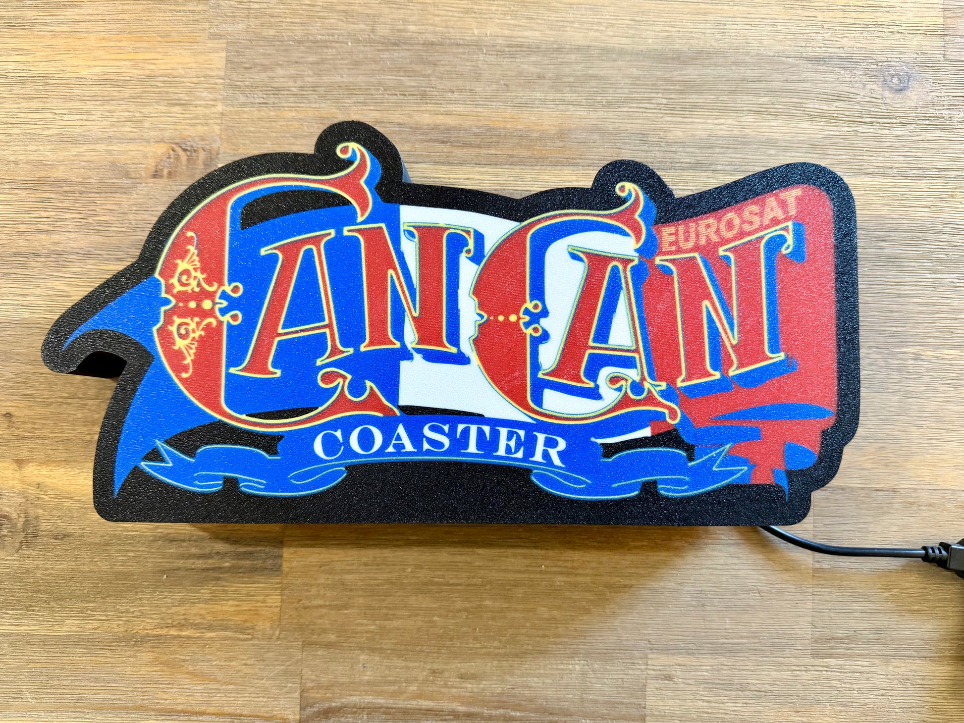 Enseigne lumineuse CanCan Coaster Eurosat 28x14 cm – Décoration LED USB – Europa-Park