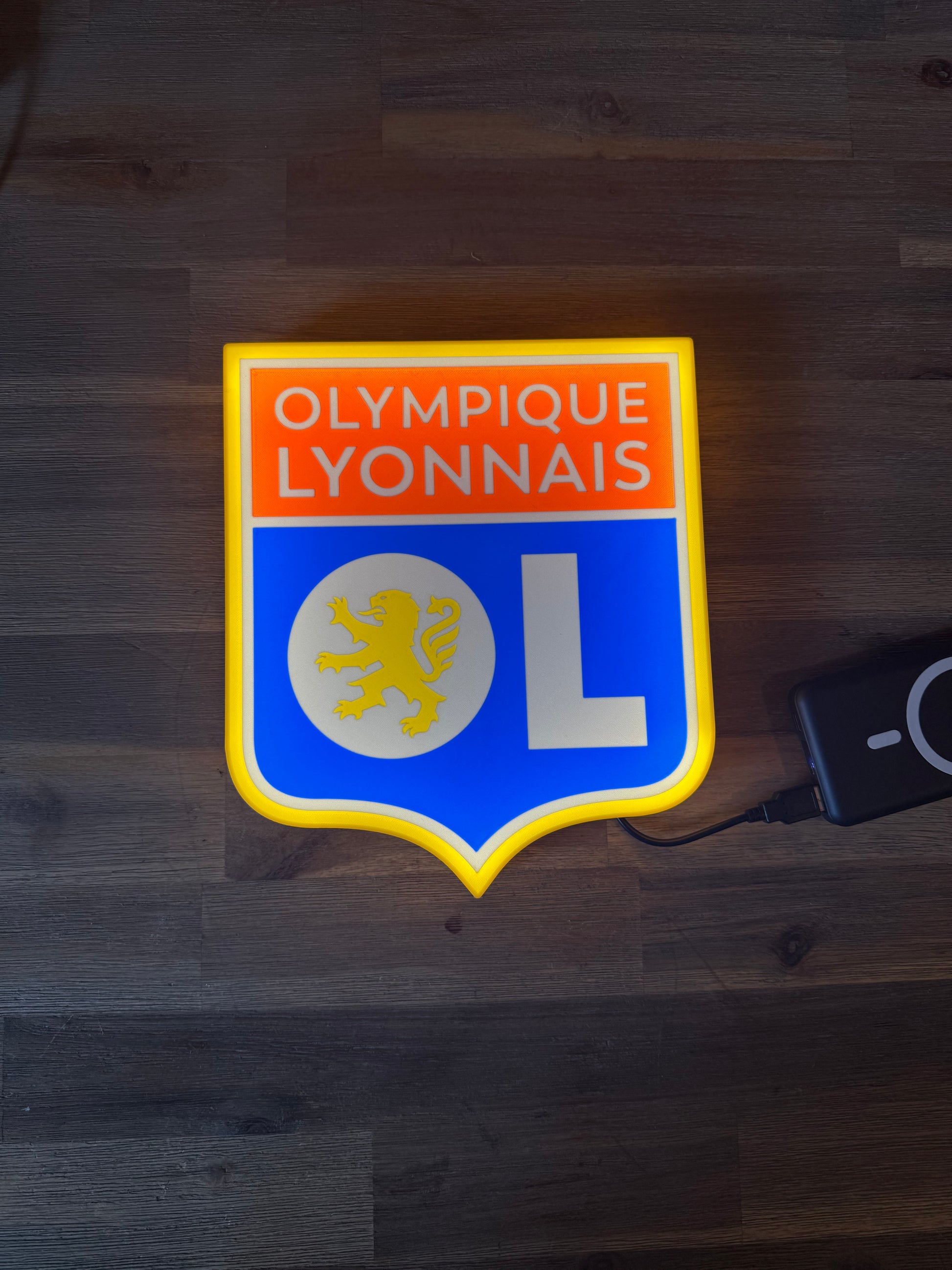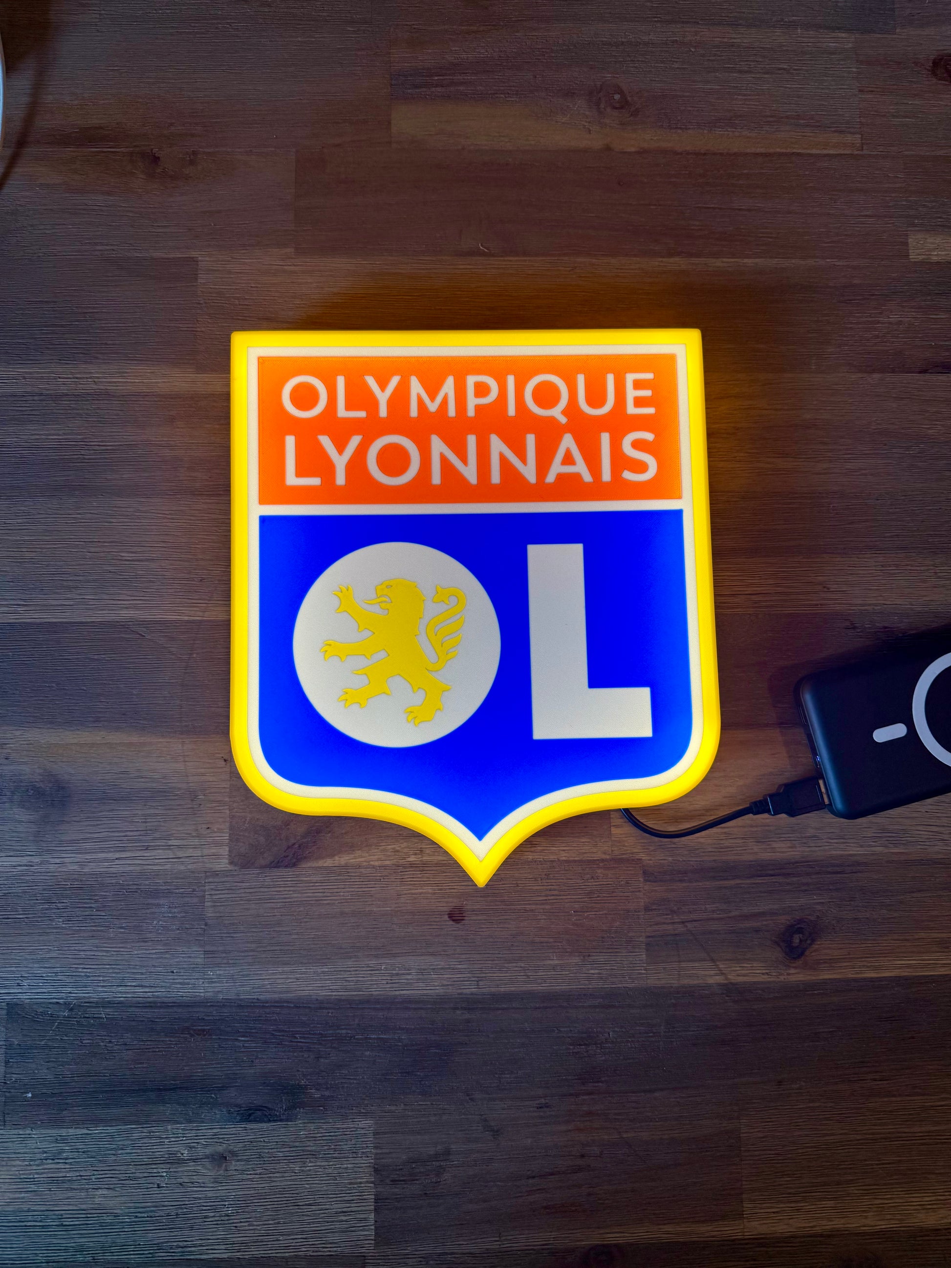 Logo lumineux Olympique Lyonnais – Déco murale LED – Cadeau supporter OL – Impression 3D artisanale